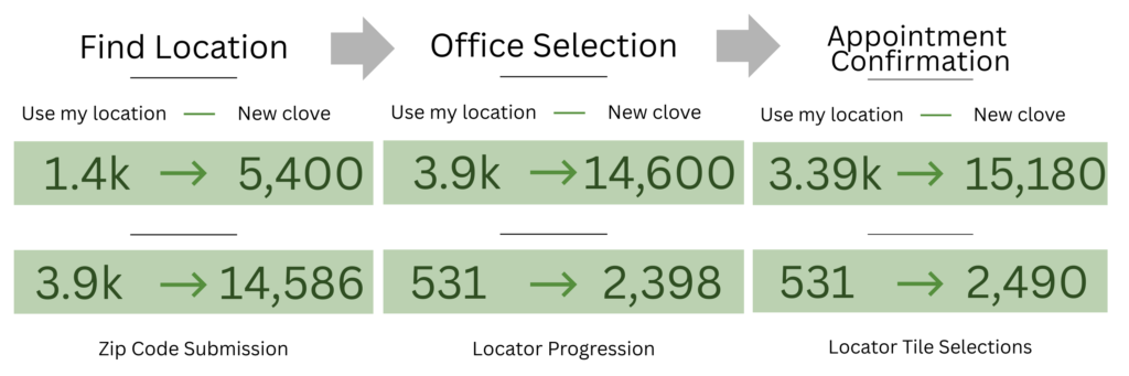 • “Use My Location” interactions increased from 1.4k to 5,417
